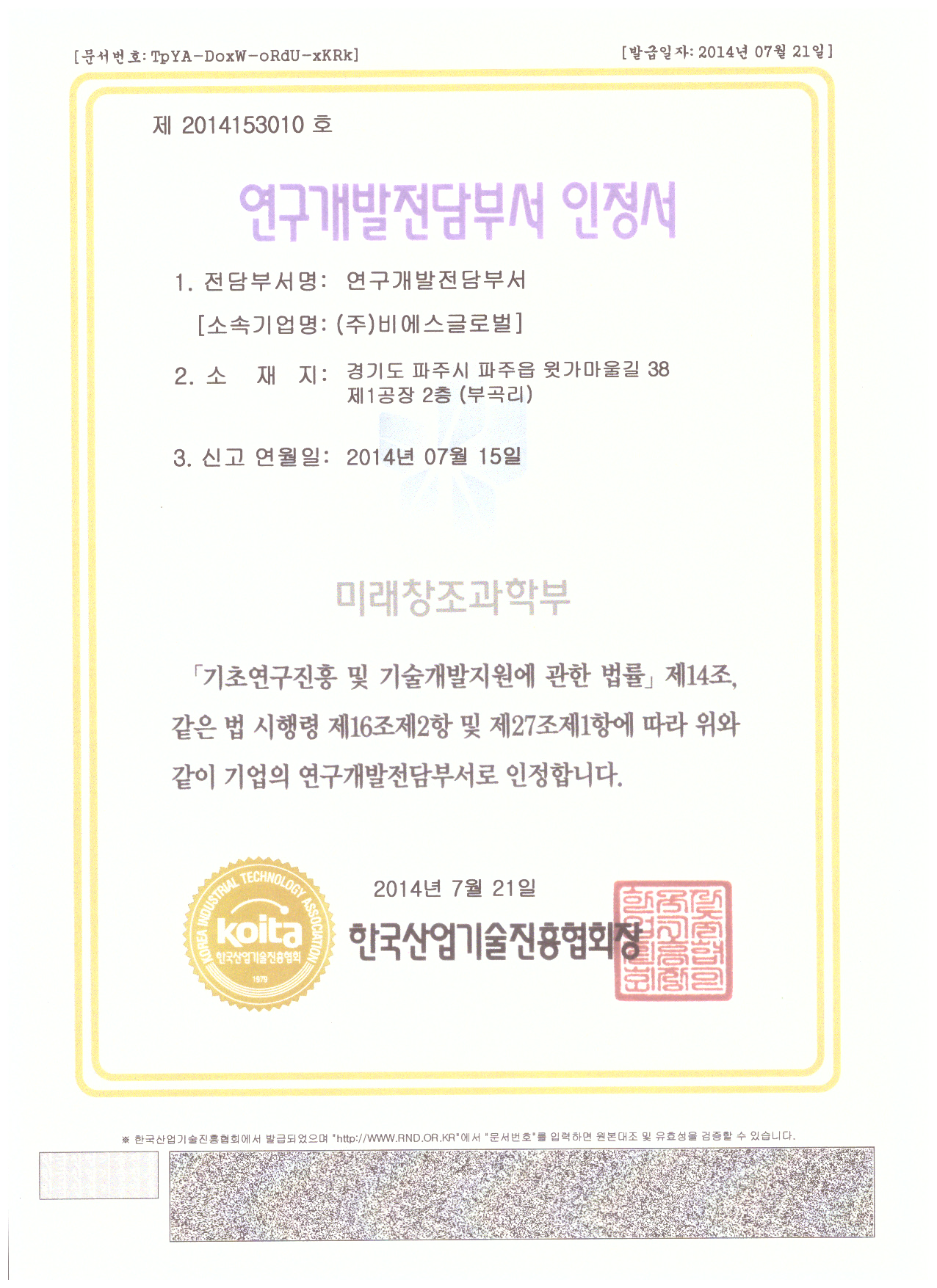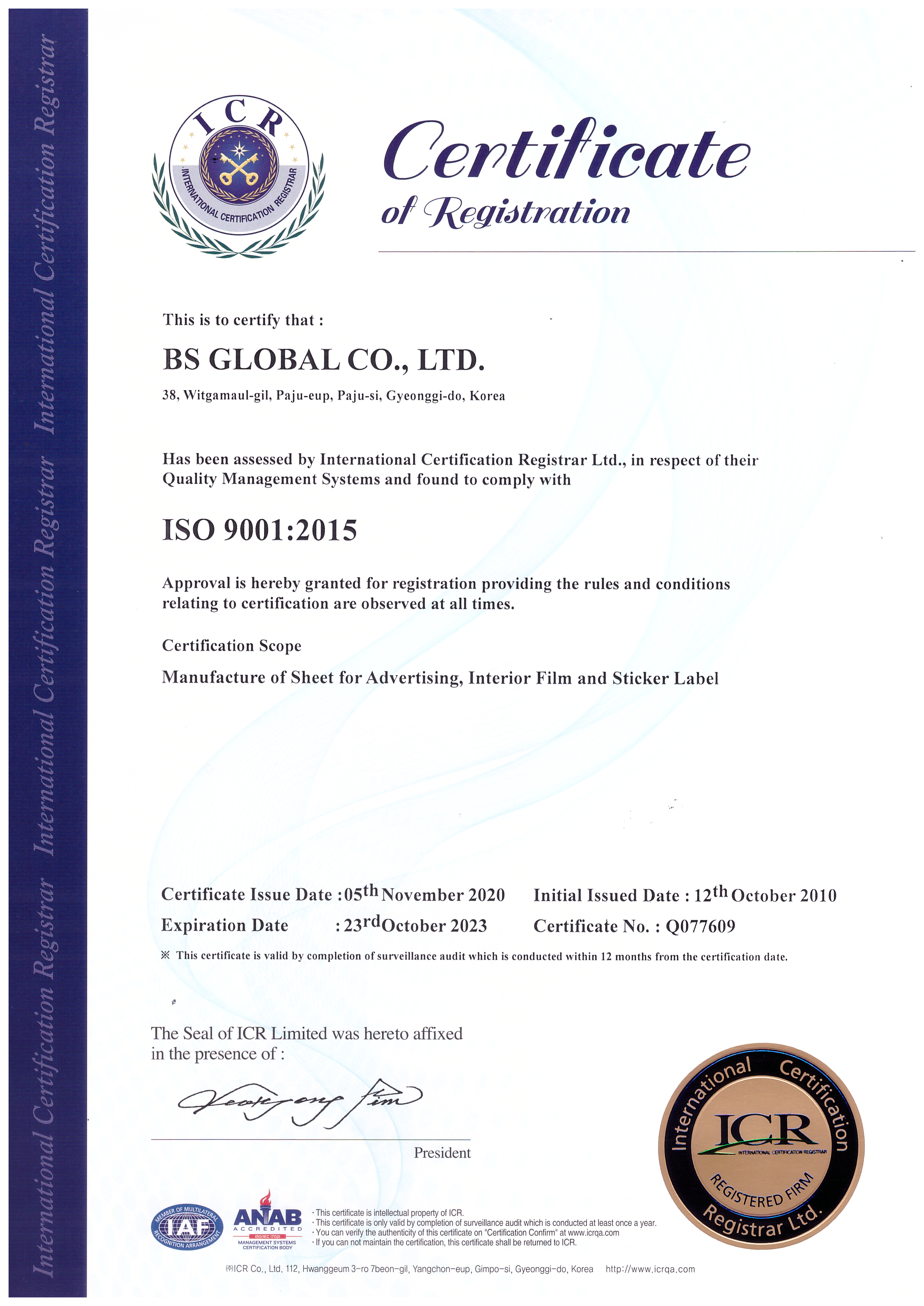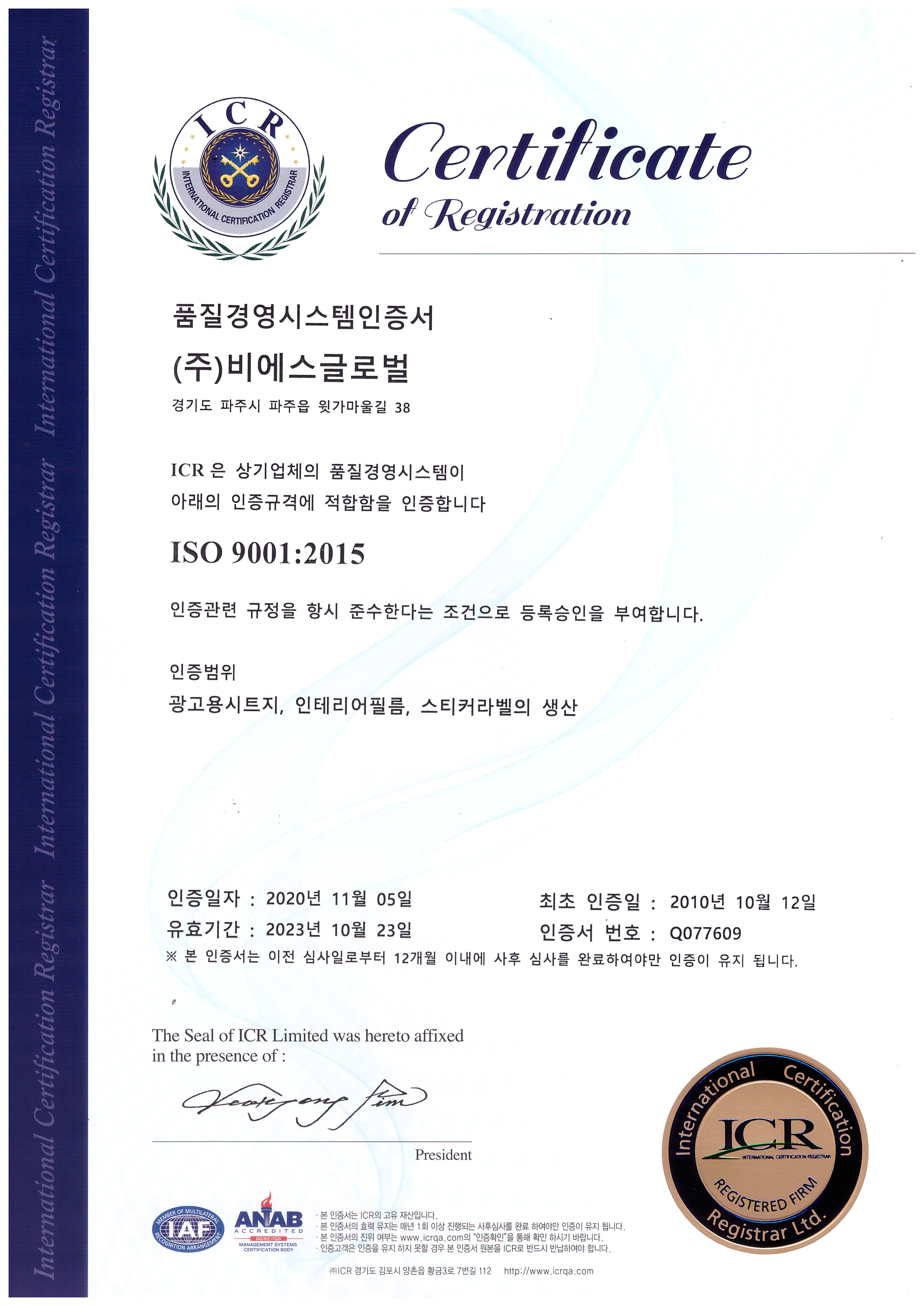 인증서첫 만남을 소중하게 생각하는 BS글로벌입니다.
